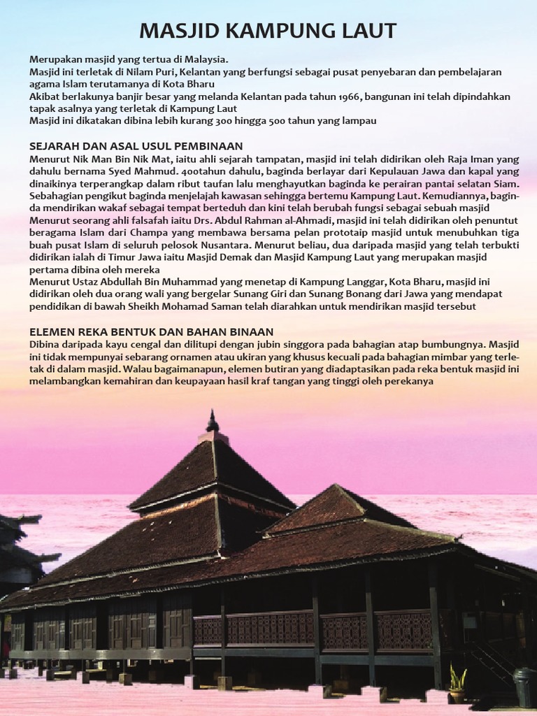 Srikandi Kemegahan Senibina Masjid Kampung Laut Masjid Kampung Laut Antara Masjid Tradisi Terpenting Di Negara Kita Manakan Tidak Usianya Dikatakan Sama Ada 300 Atau 500 Tahun Bergantung Kepada Sumber Umumnya Tertua